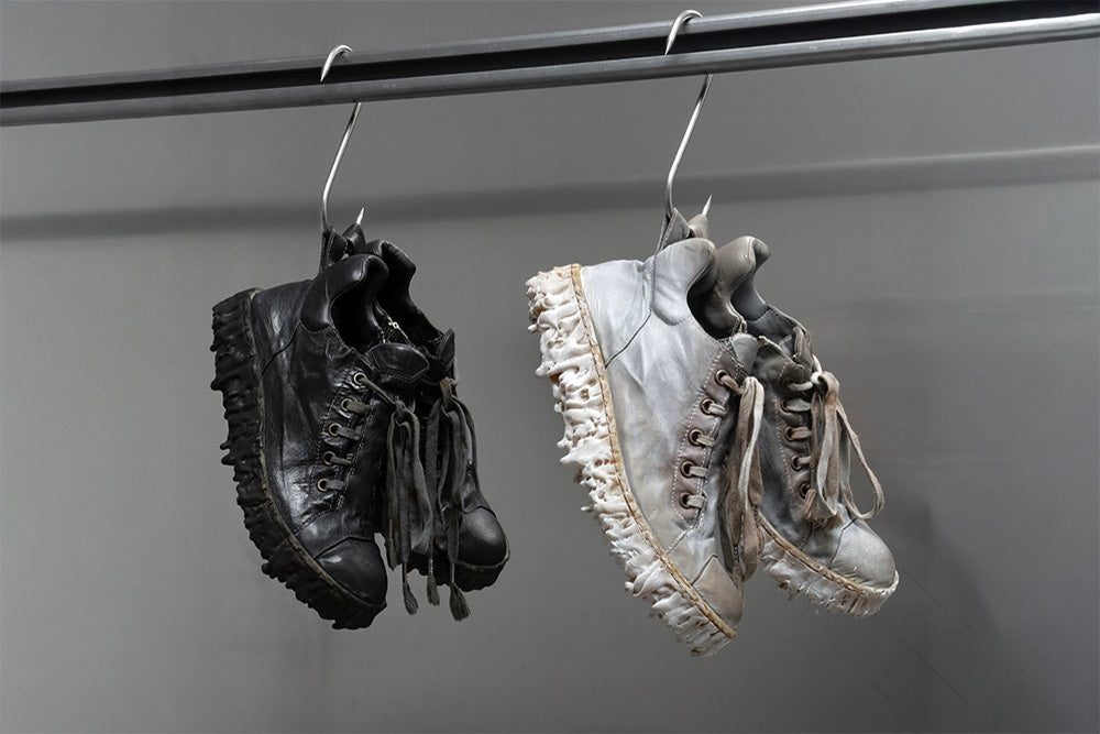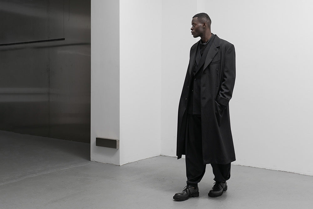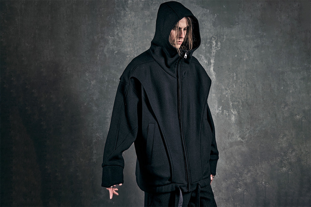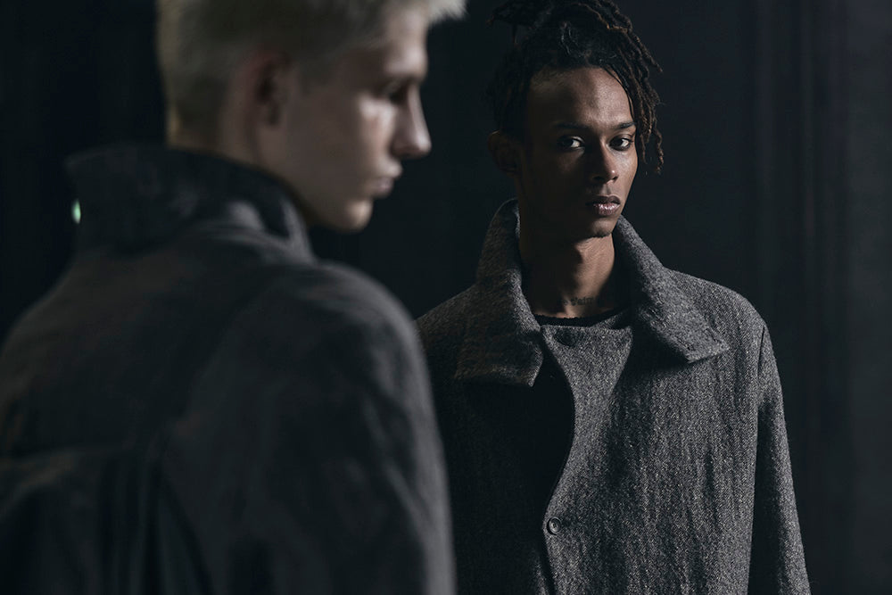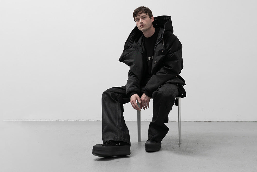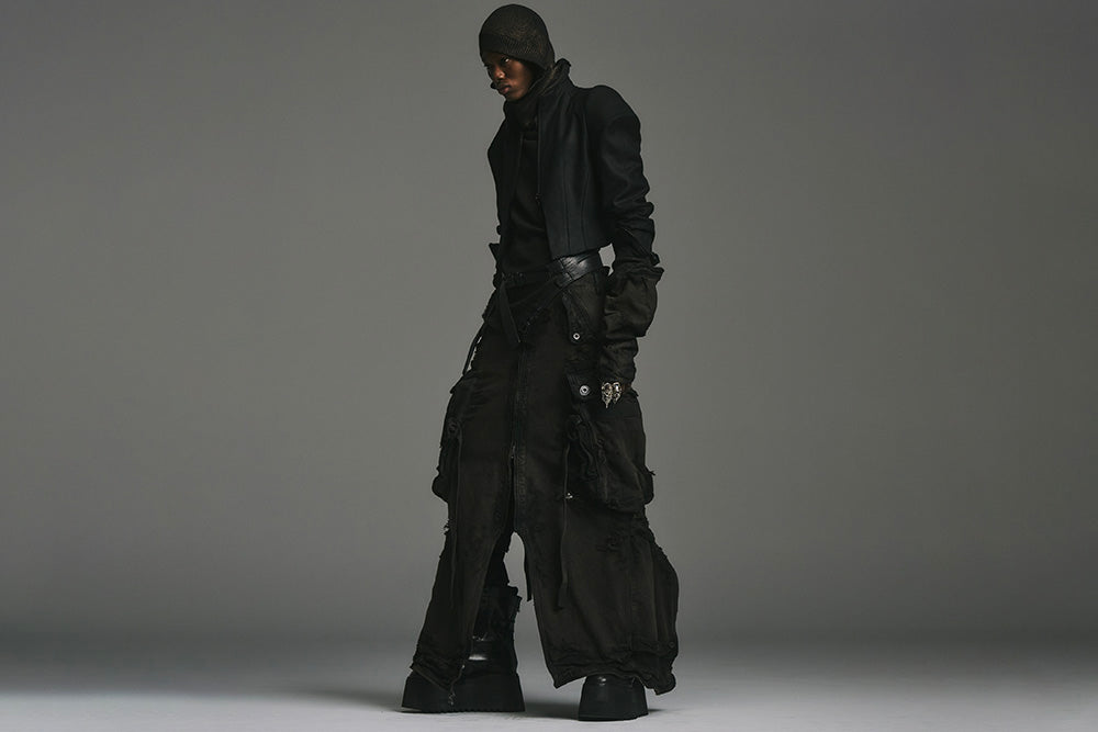 Julius_7 fusiona la estética underground de Tokio, el minimalismo industrial y la silueta vanguardista: una marca de streetwear de culto conocida por su sastrería deconstruida, sus paletas oscuras y su estilo gótico distópico.