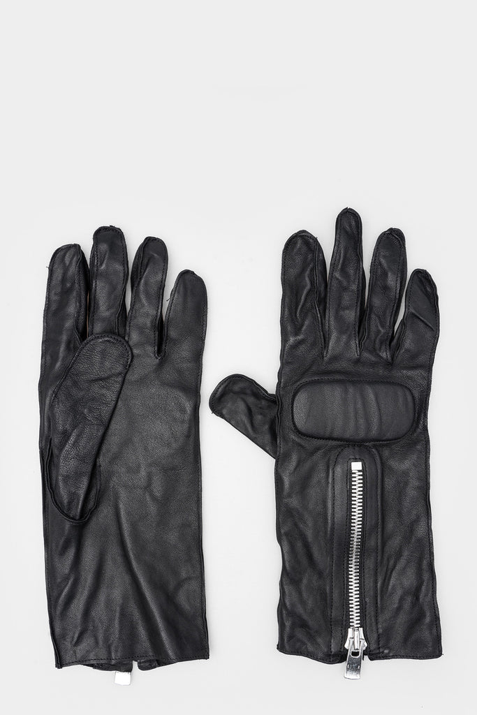 Unisex, black leather, zip up gloves from Guidi.