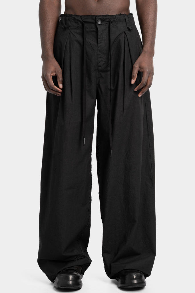 Men's black wide cotton poplin pant with pleats at front from the SS25 collection from Andrea Ya’aqov.