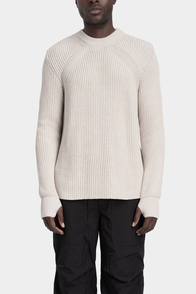 Men’s off-white cotton knit crewneck sweater from the 04 collection from JG1 by Justin Gall.