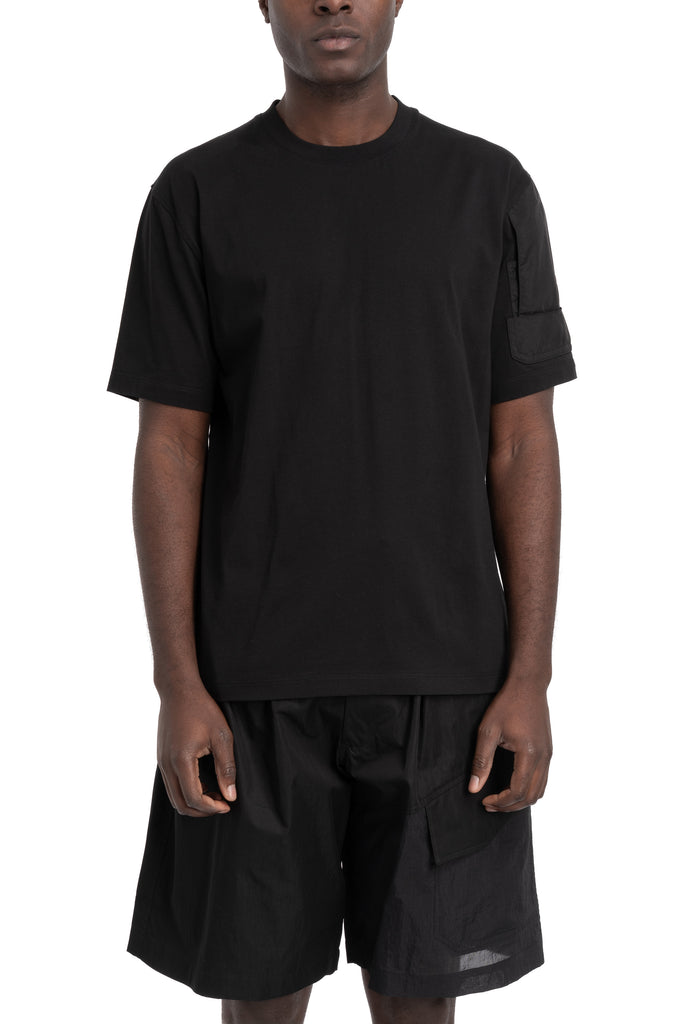 Men’s black cotton t-shirt featuring a contrast panel detail in left sleeve from the SS26 collection from Y-3 Adidas x Yohji Yamamoto.