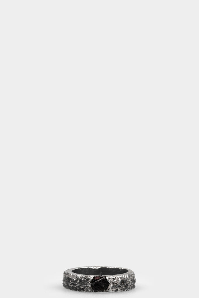 Chunky silver band ring with set Ruby. Handmade 1/1