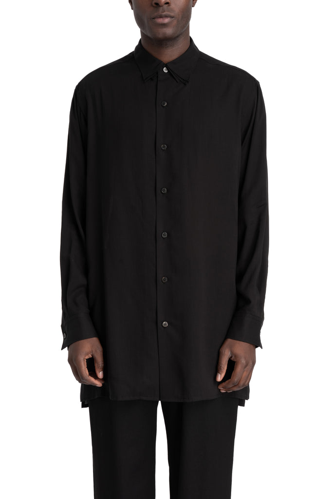 Men’s black woven cellulose shirt featuring tripple layered collar from the SS26 collection from Y’s Yohji Yamamoto.
