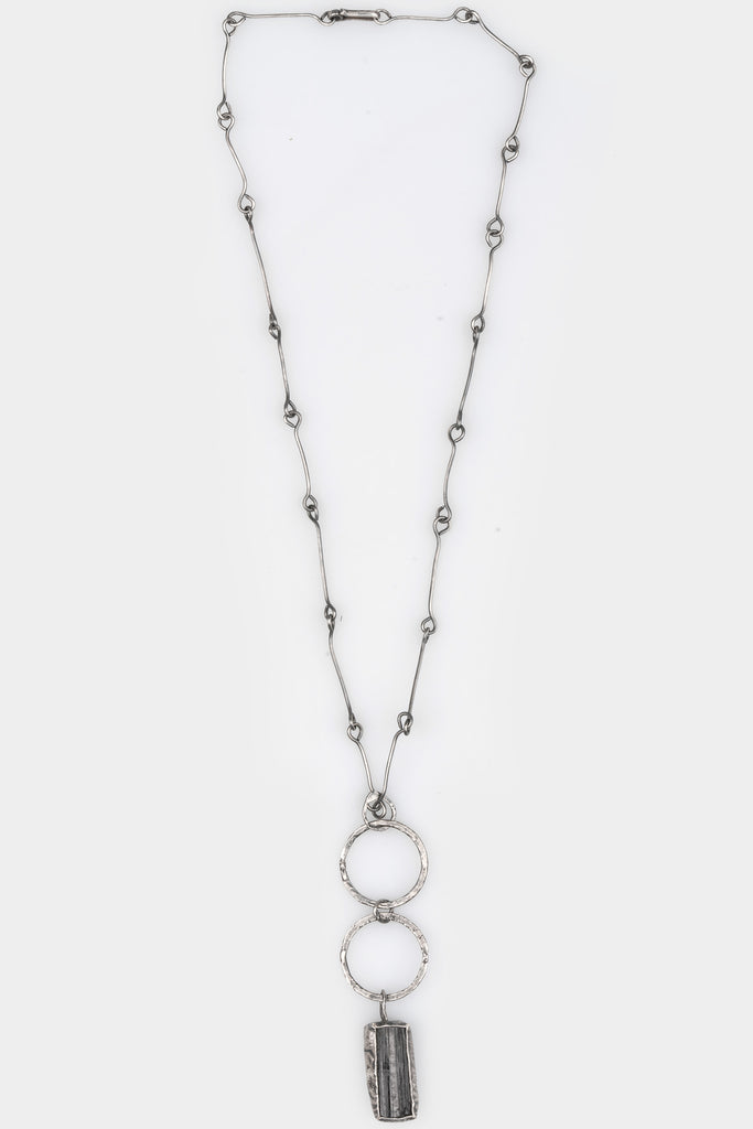 Silver link Necklace with black Tourmaline pendant. Handmade 1/1