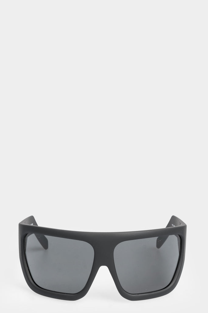 Davis sunglasses features a large wrap around frame with geometric curved lenses from Rick Owens.