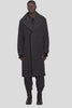 Men's long, dark grey double breasted coat in a wool blend fabric with a deformed herringbone jacquard weave from the AW25 collection from D.Hygen.