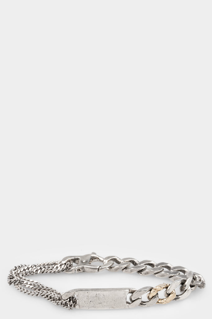 Unisex silver chain bracelet featuring a single link in 9kt gold & a twisted thin silver chain from Enri Mars.