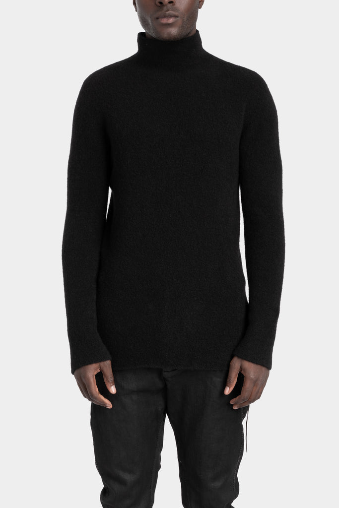 Men's black high neck knitted cashmere pullover featuring contrast hand stitching in the back from the AW25/26 collection from MD75.