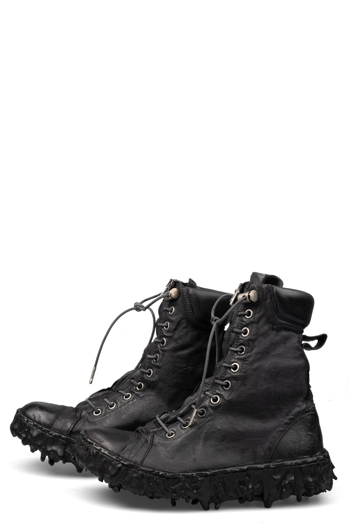 Men’s deep black hand dyed high top leather sneakers featuring a new "hidden" front lacing and side zipper from Culture of Brave.