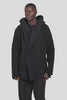 Men's hooded double breasted jacket in heavyweight black wool blend featuring a large hood from the AW25 collection from Forme D'Expression.