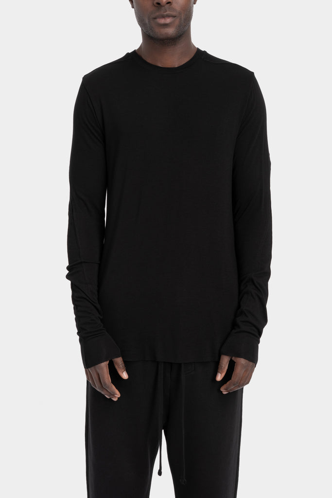 Men's black lightweight viscose jersey long sleeve t-shirt featuring piped seams throughout from the SS26 collection from Thom Krom.