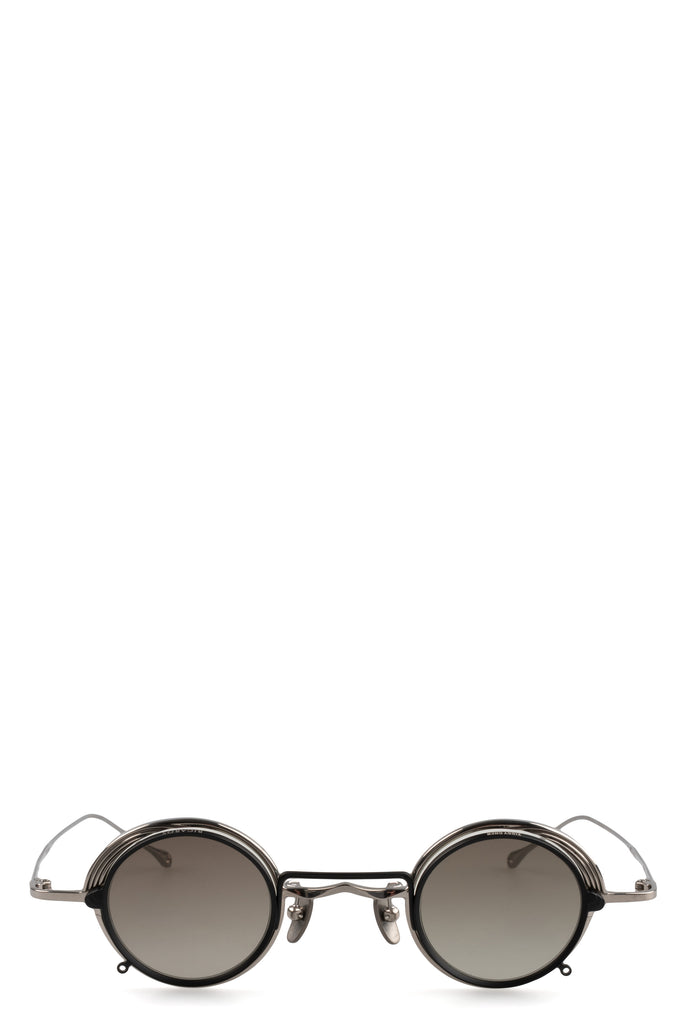 Double layer polished titanium glasses / clip sunglasses in textured patina finish titanium and patinated black clip-on sunglasses with bronze gradient UV400 polyamide sun lenses from Rigards.