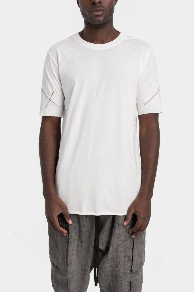 Men's cotton t-shirt in white featuring contrast scar-stitch details in the back from the SS26 collection from Thom Krom.