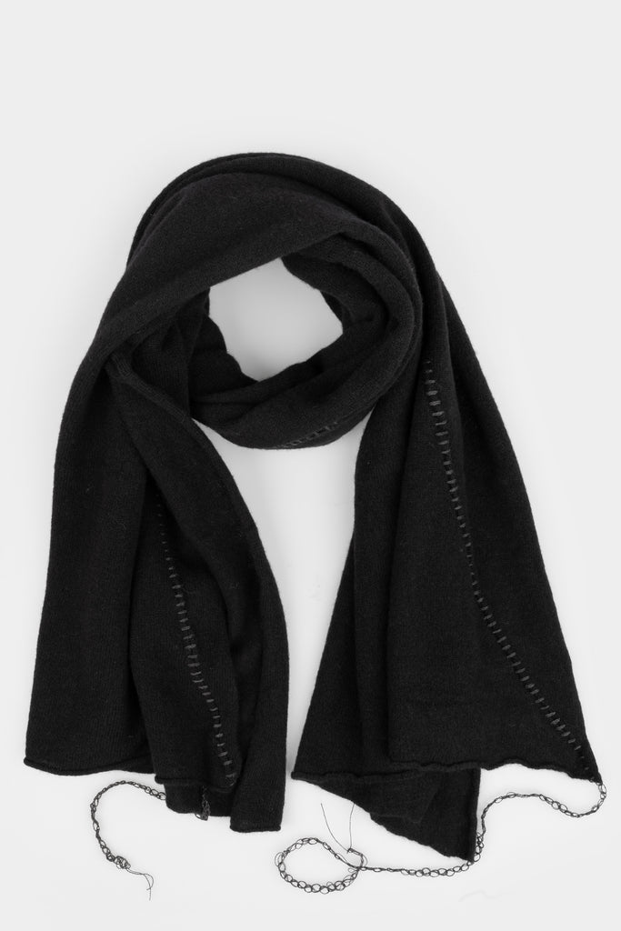Men's black knitted wool and cashmere scarf featuring grey scar-stitch details from the AW25/26 collection from MD75.