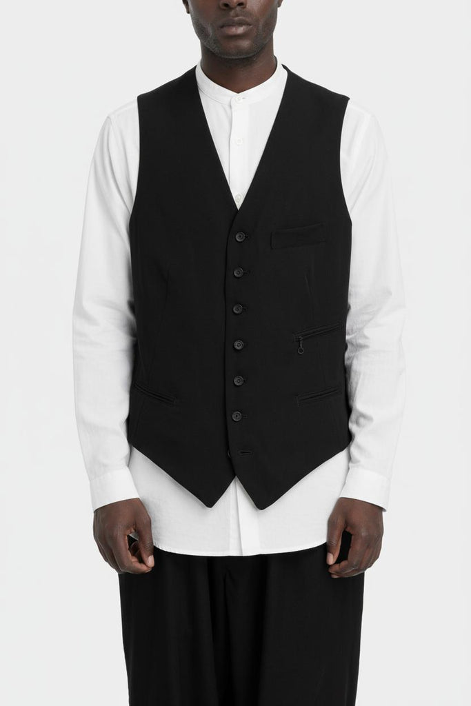 Men’s classic black wool vest from the FW25 collection from Y’s Yohji Yamamoto.