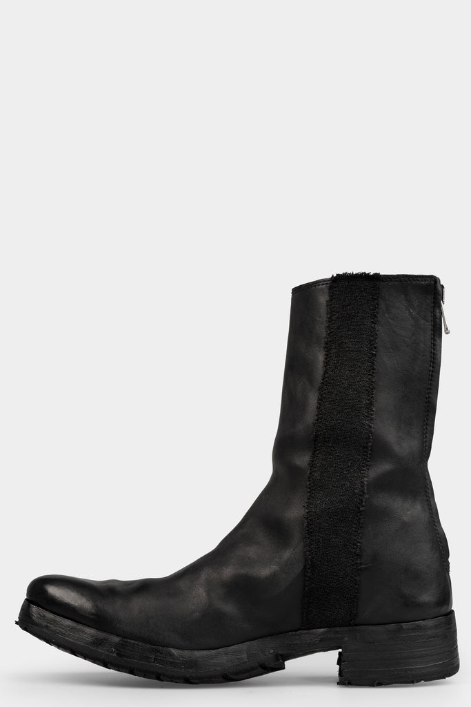 Men's handmade boots in vegetable tanned black horse leather with inset side stripe in wool from the collaboration collection between MD75 and Atadep Itterom.