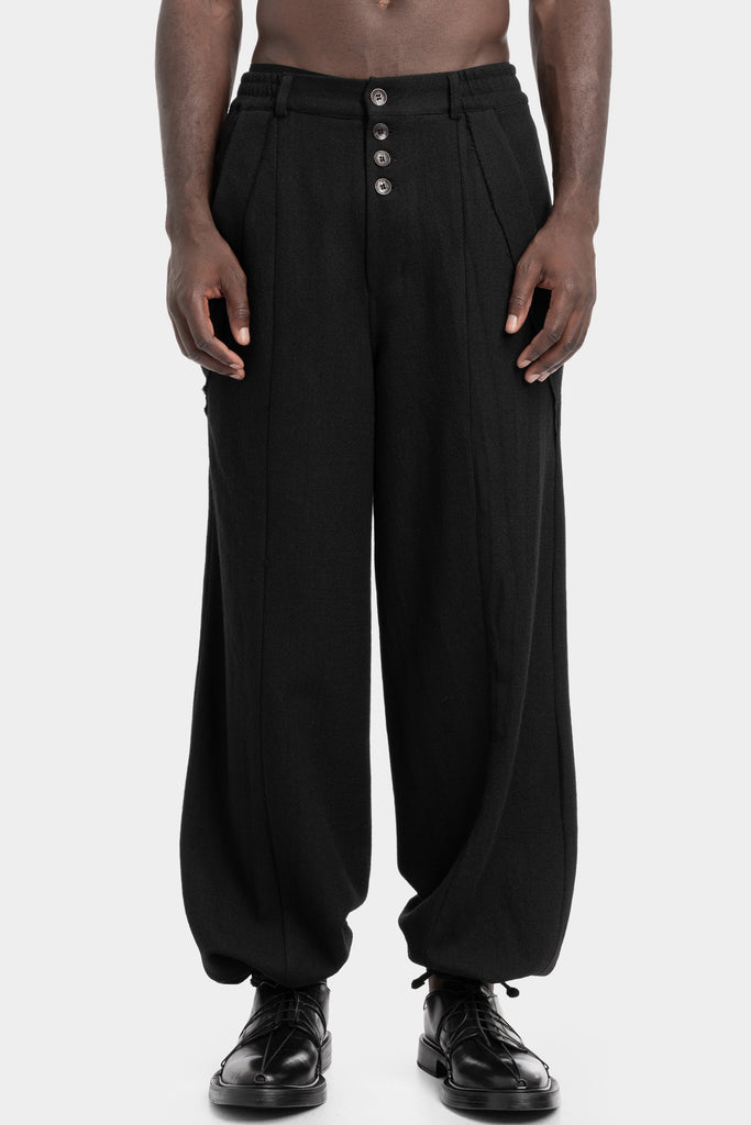 Men's black straight cut woven wool blend trousers from the FW25/26 collection from La Haine Inside Us.