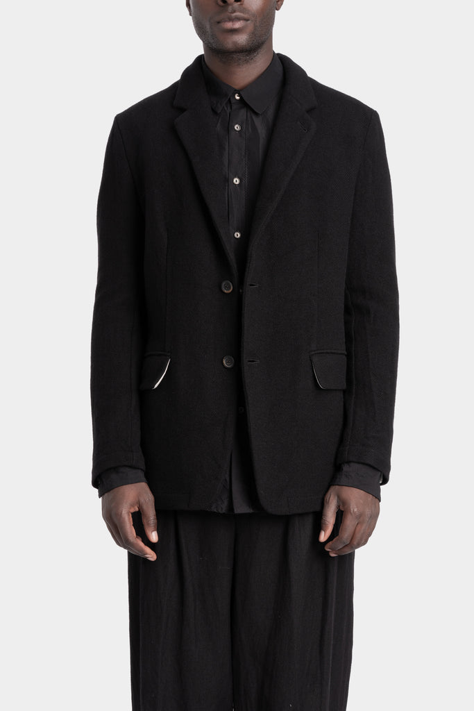 Men's blazer jacket in heavyweight wool and cashmere blend featuring flap pockets and double vent at back from the AW25 collection from Forme D'Expression.