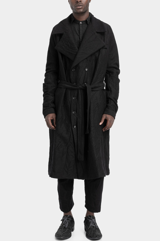 Men's long black crinkled trench wool coat from the FW25/26 collection from Marc Point.